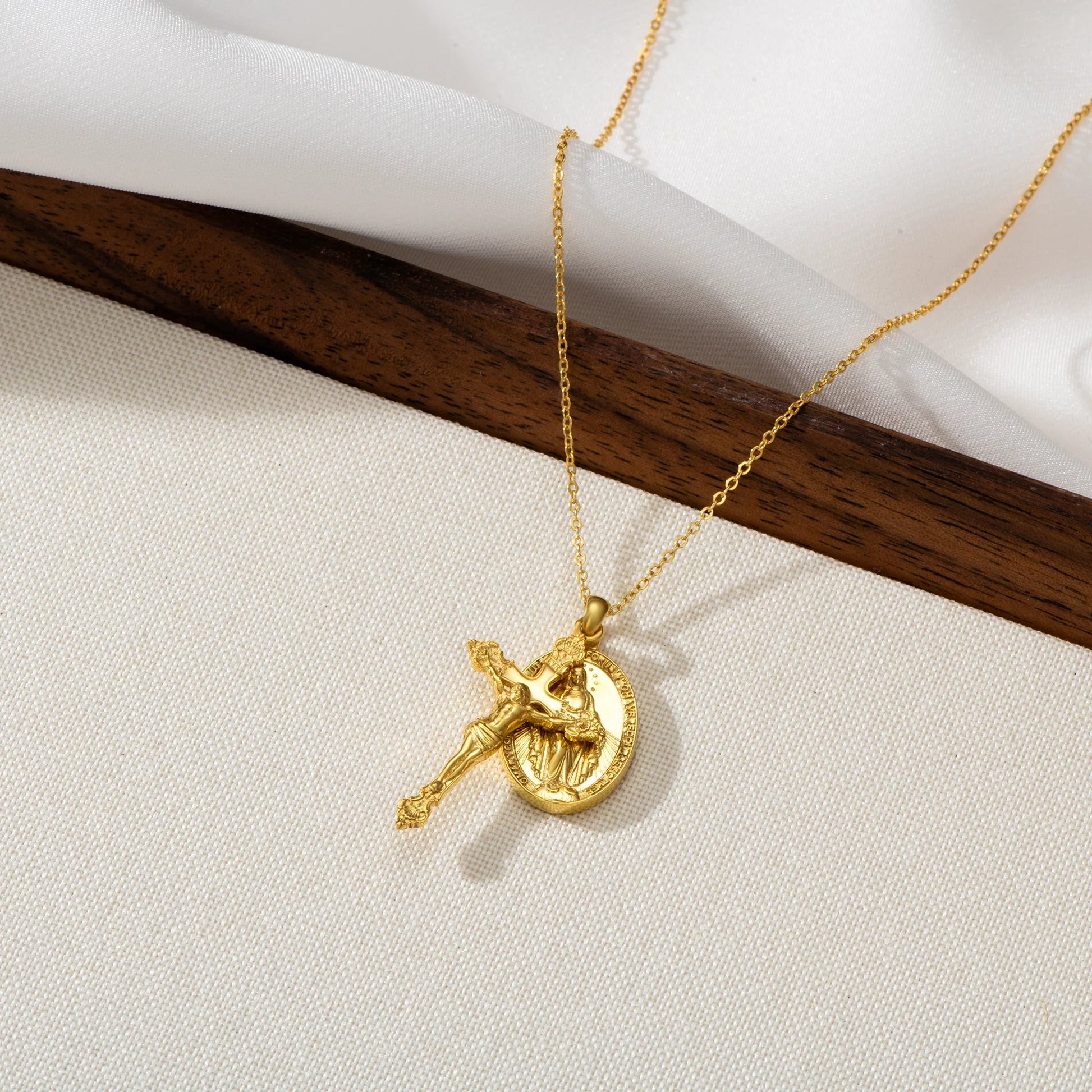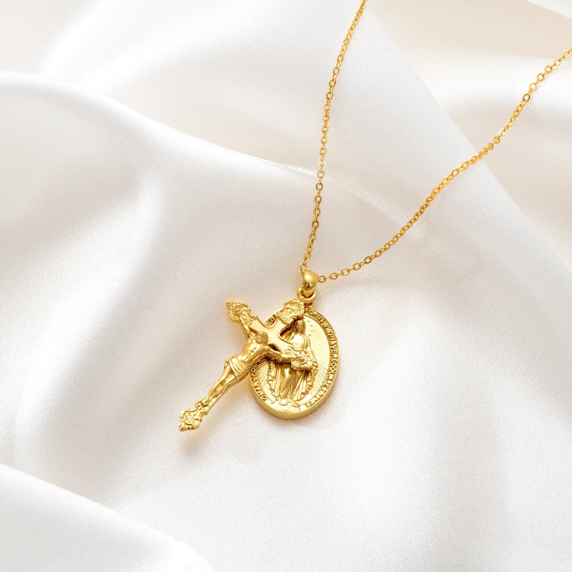 Catholight Miraculous Medal and Crucifix Necklace in Gold Vermeil